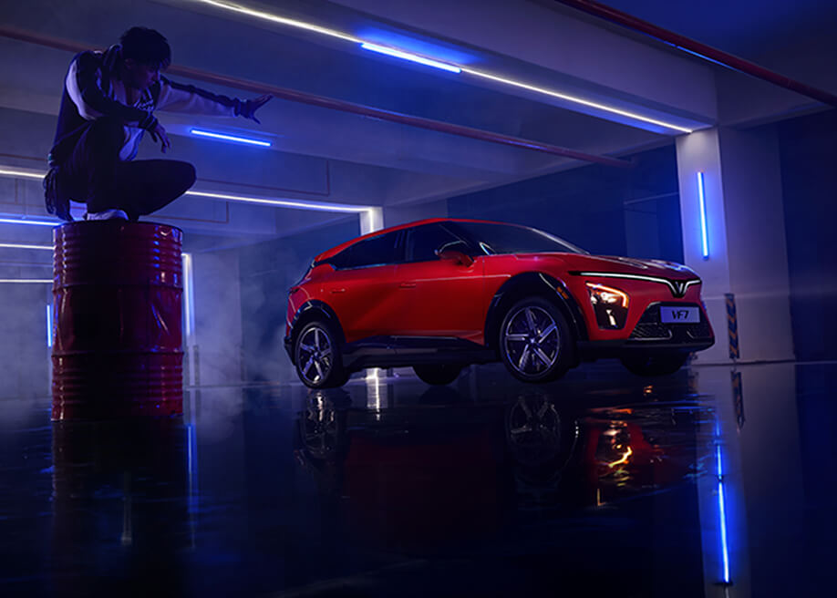 Lấy cảm hứng từ tinh thần thời trang phóng khoáng và cảm giác adrenaline bùng nổ khi đạt tốc độ cao, TMRW đã xây dựng một phong cách đậm cá tính cho VF 7. Bảng màu táo bạo, bố cục tối giản nhưng sắc nét, cùng ánh sáng tinh tế - tất cả các yếu tố đều được trau chuốt kỹ lưỡng để tôn lên vẻ thời thượng và tinh thần bứt tốc của VF 7.